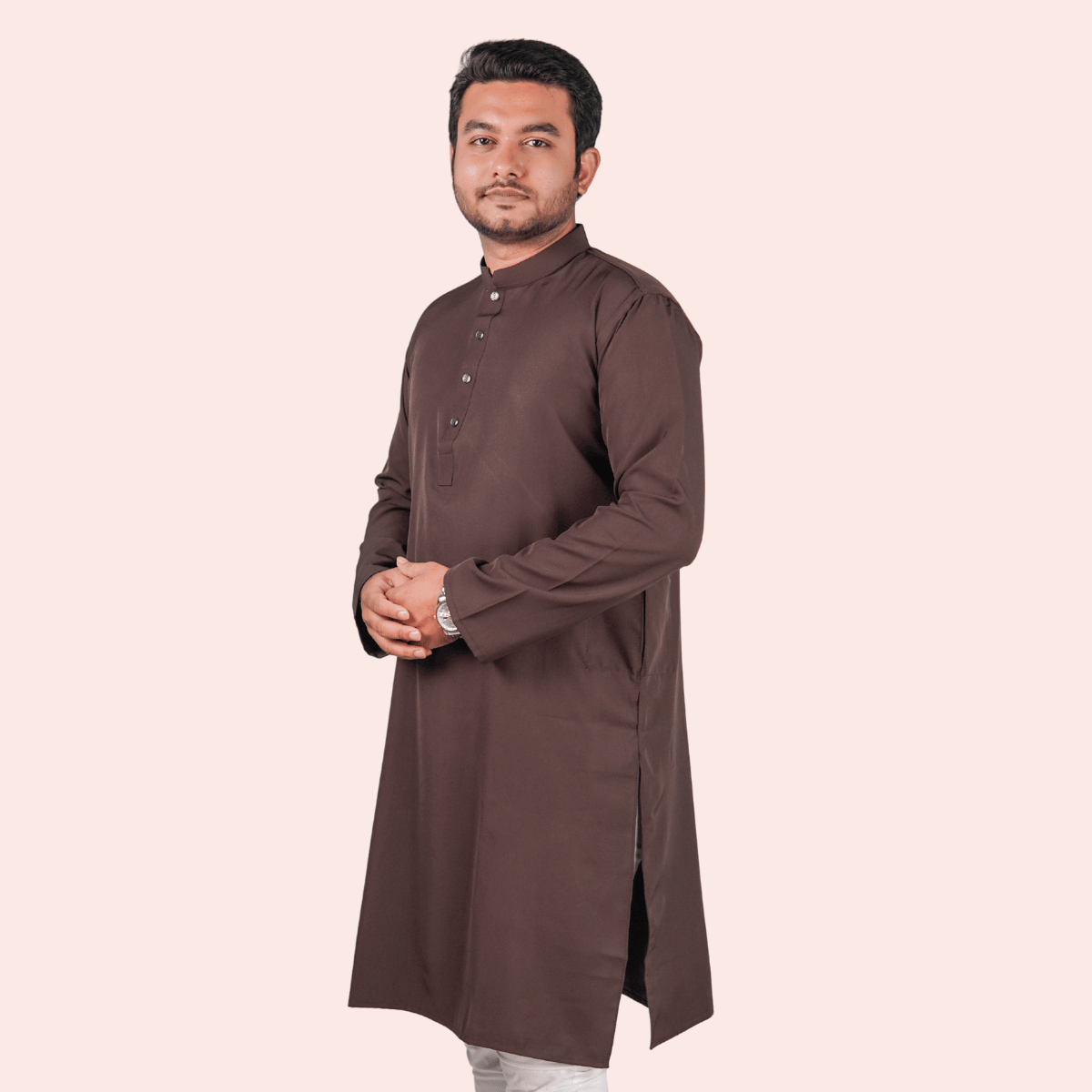 কফি কালার অরিজিনাল প্রিমিয়াম চায়না ফেব্রিকের সলিড পাঞ্জাবি